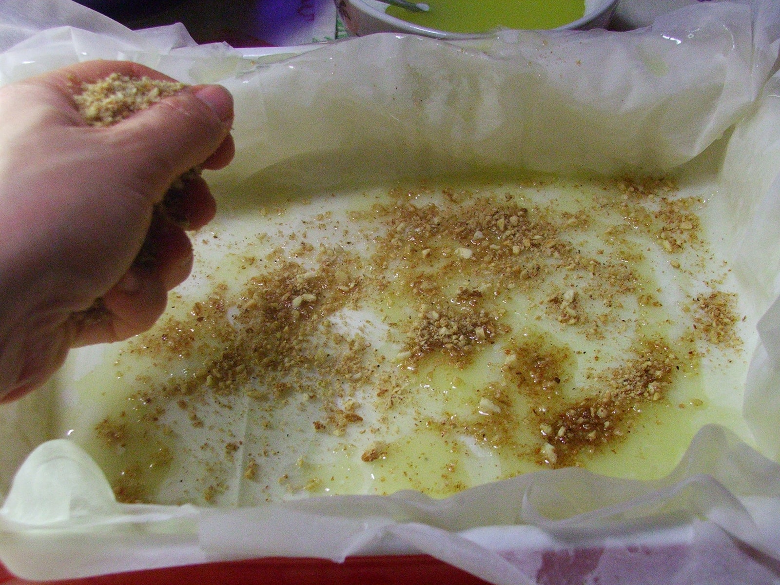 - Continuiamo così gli strati di baklavas alternando sempre il foglio, il burro, la frutta secca e così via.