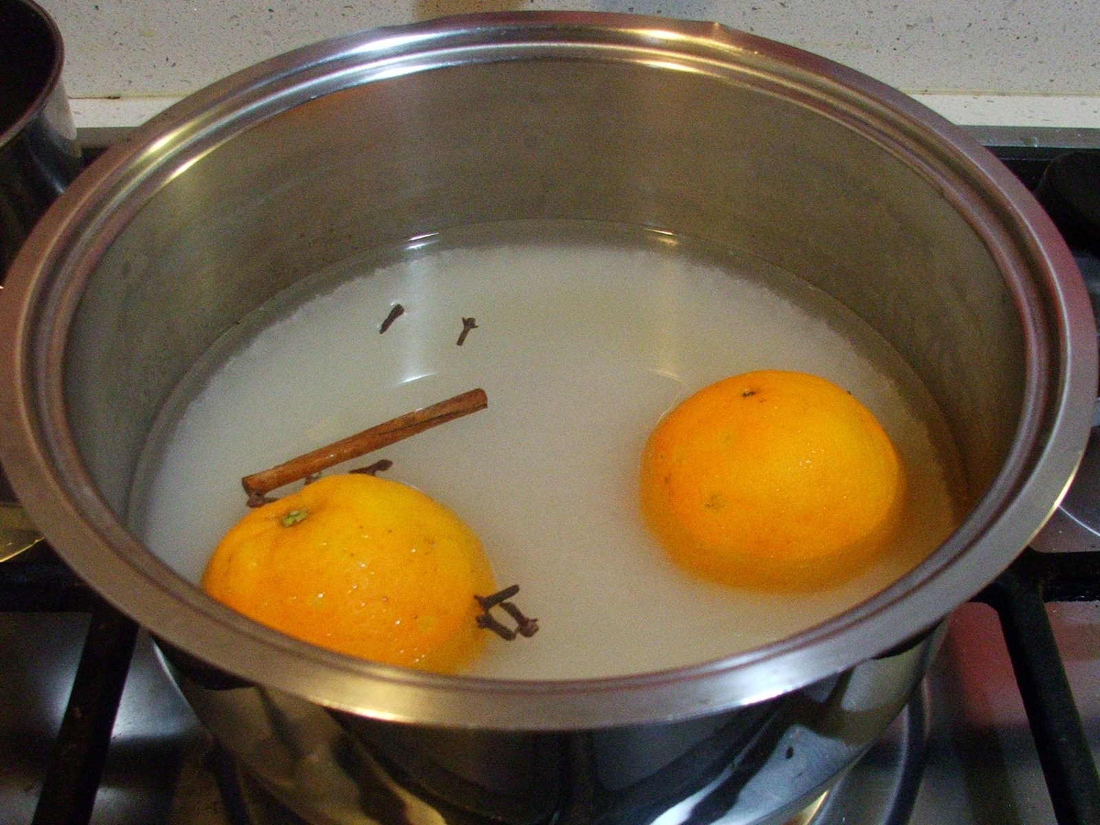 - Per prima cosa prepariamo lo sciroppo che deve raffreddarsi. In una pentola mettiamo a scaldare tutti gli ingredienti insieme. Appena lo zucchero si scioglie e diventa trasparente spegniamo il fuoco e lasciamo raffreddare molto bene.