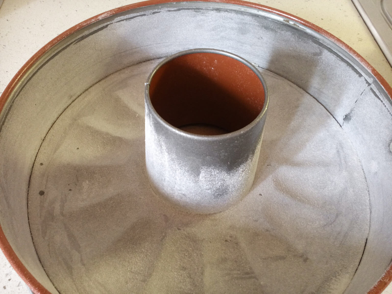 - Nel frattempo, imburriamo molto bene la forma e successivamente spolveriamo con della farina in modo da coprire tutta la sua superficie.