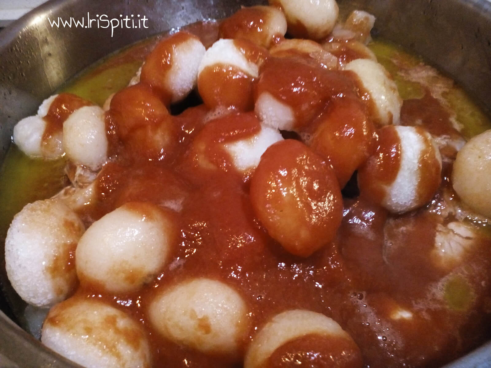 - A questo punto uniamo le cipolline e subito dopo la polpa di pomodoro, il sale, il pepe e le bacche di pimento.