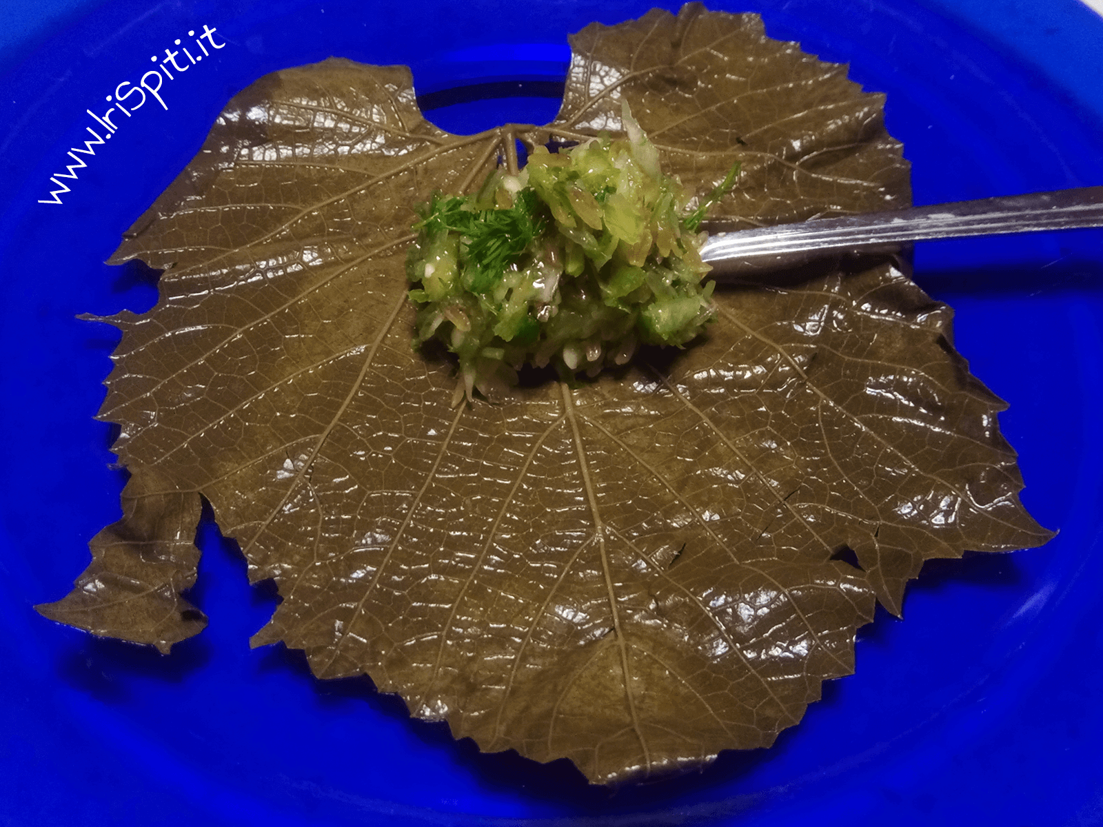 In questa ricetta ho usato delle foglie comprate in vaso sotto salamoia, perciò salterò il passo della lessatura. Appena riesco a raccogliere delle foglie di vite, visto che non sono pronte, aggiornerò la ricetta.