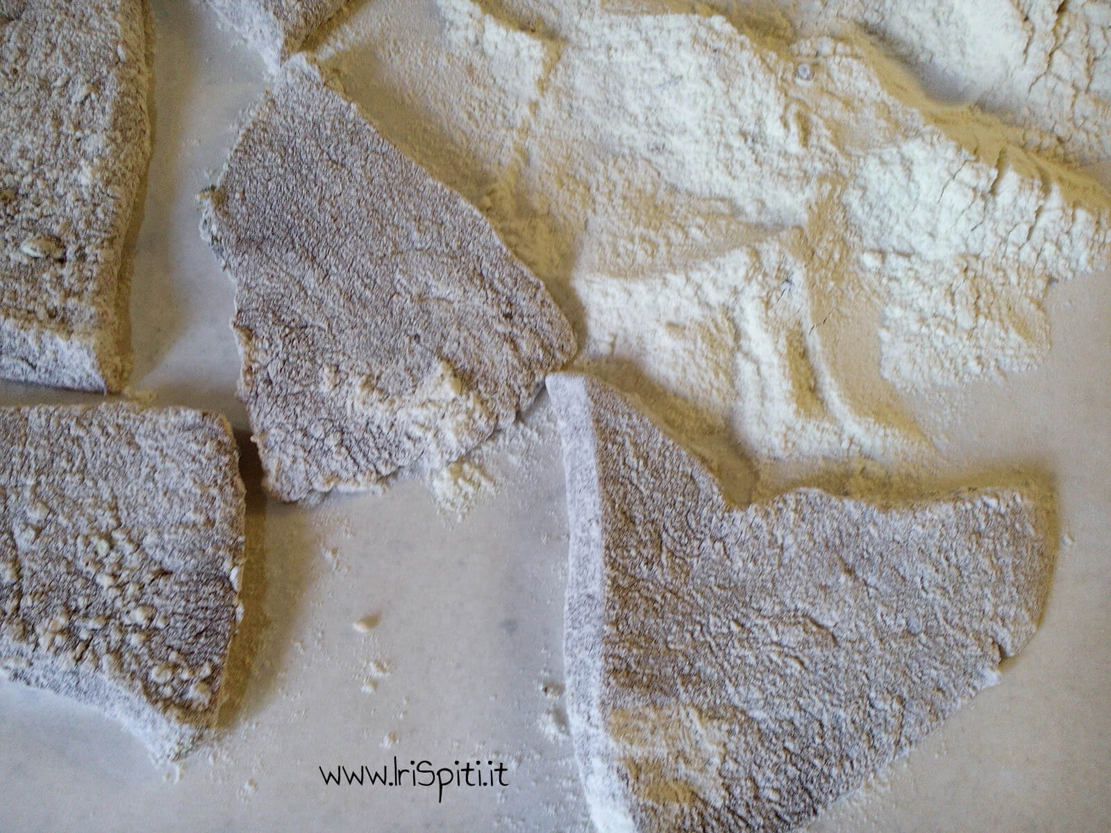 - Infariniamo il fegato molto bene sopra la carta da forno per facilitare la procedura.