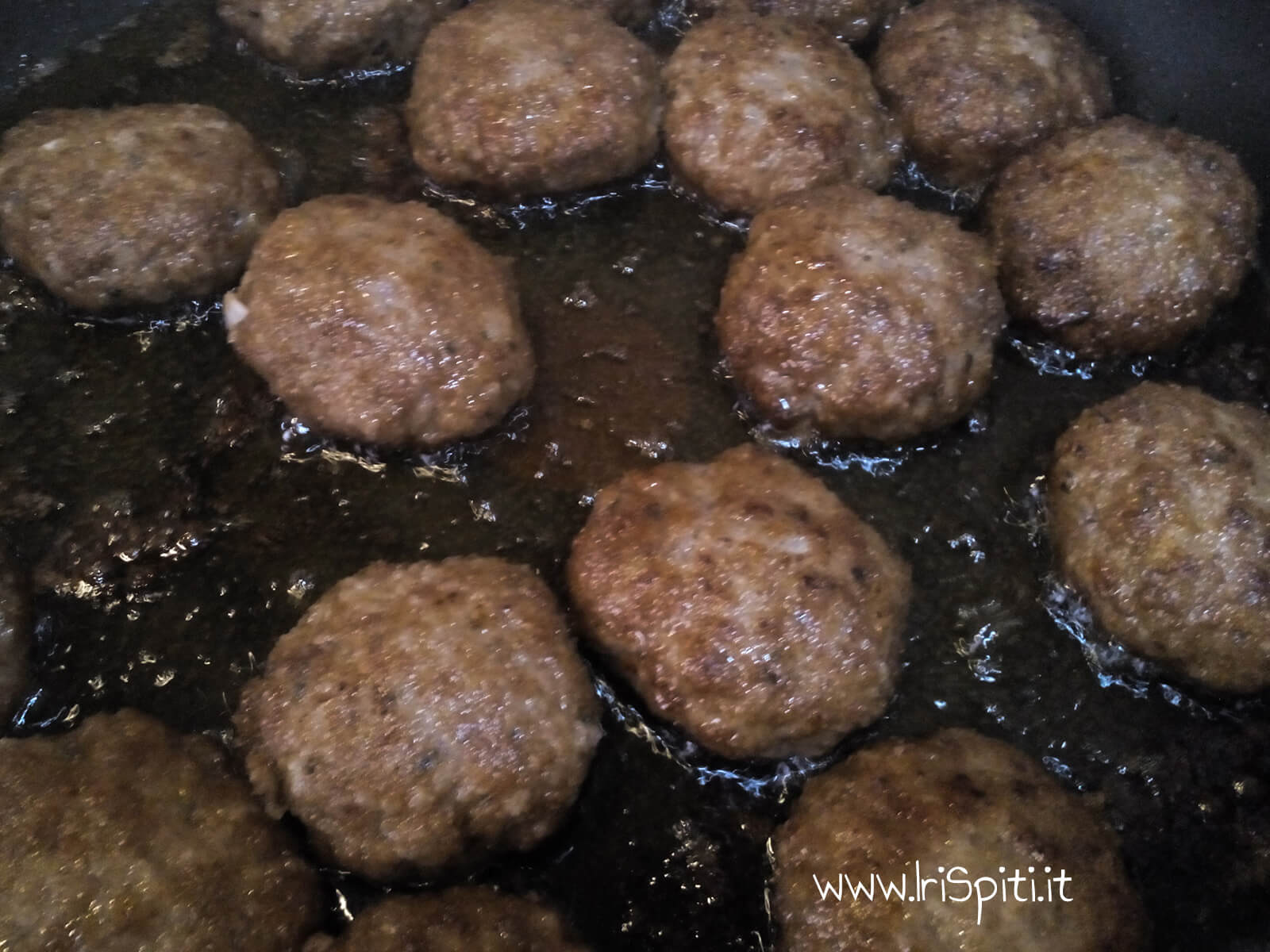 7. In una padella larga e bassa scaldiamo l’olio di oliva e quando è pronto friggiamo i keftedes a fuoco medio. Stiamo attenti alla temperatura dell’olio che non deve essere troppo elevata e giriamo ogni tanto assicurandoci che le polpette siano ben cotte all’interno.