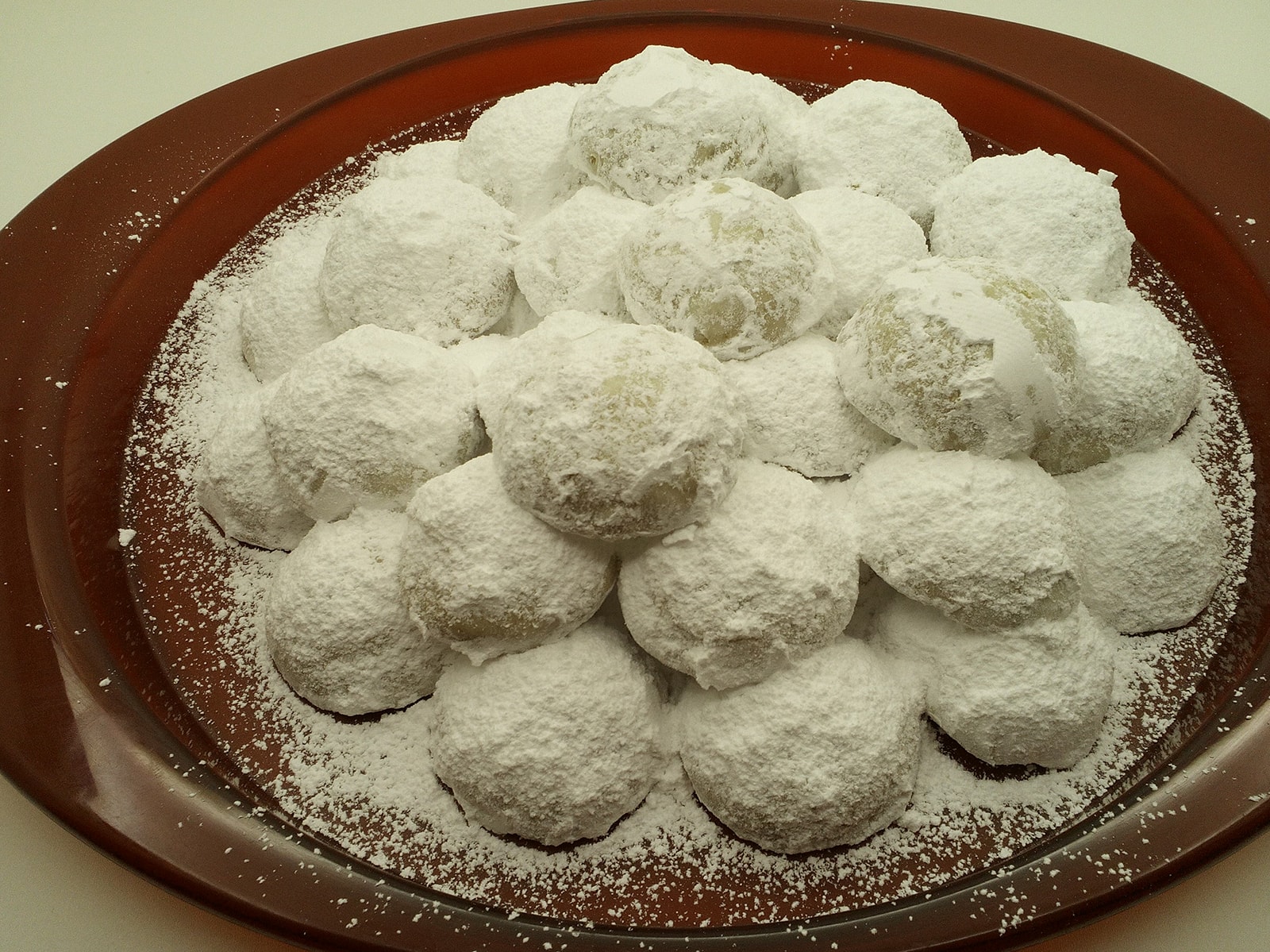 - Riportiamoli in un vassoio e creiamo una piramide, aggiungendo ad ogni strato ulteriore zucchero a velo con l’aiuto dei un piccolo setaccio.