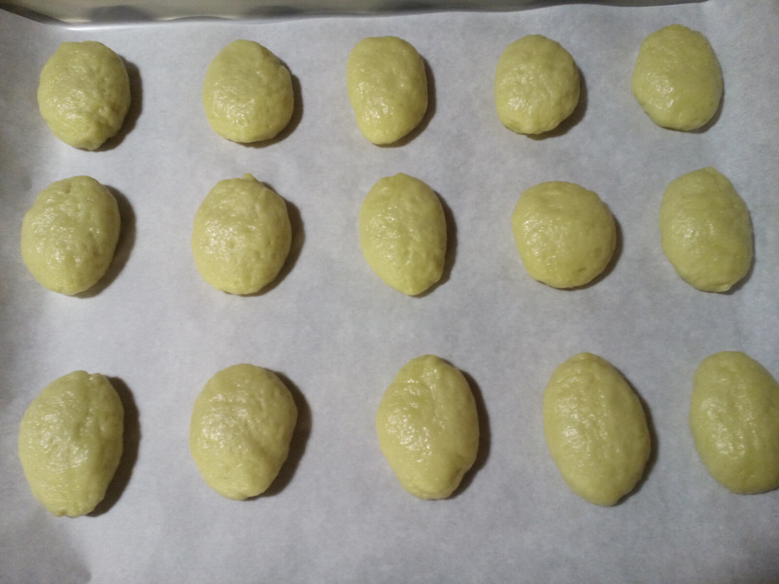 - Formiamo delle piccole polpette ovali circa 30 gr ognuna e mettiamo sulla teglia ricoperta con carta da forno lasciando una piccola distanza tra l’una e l’altra.