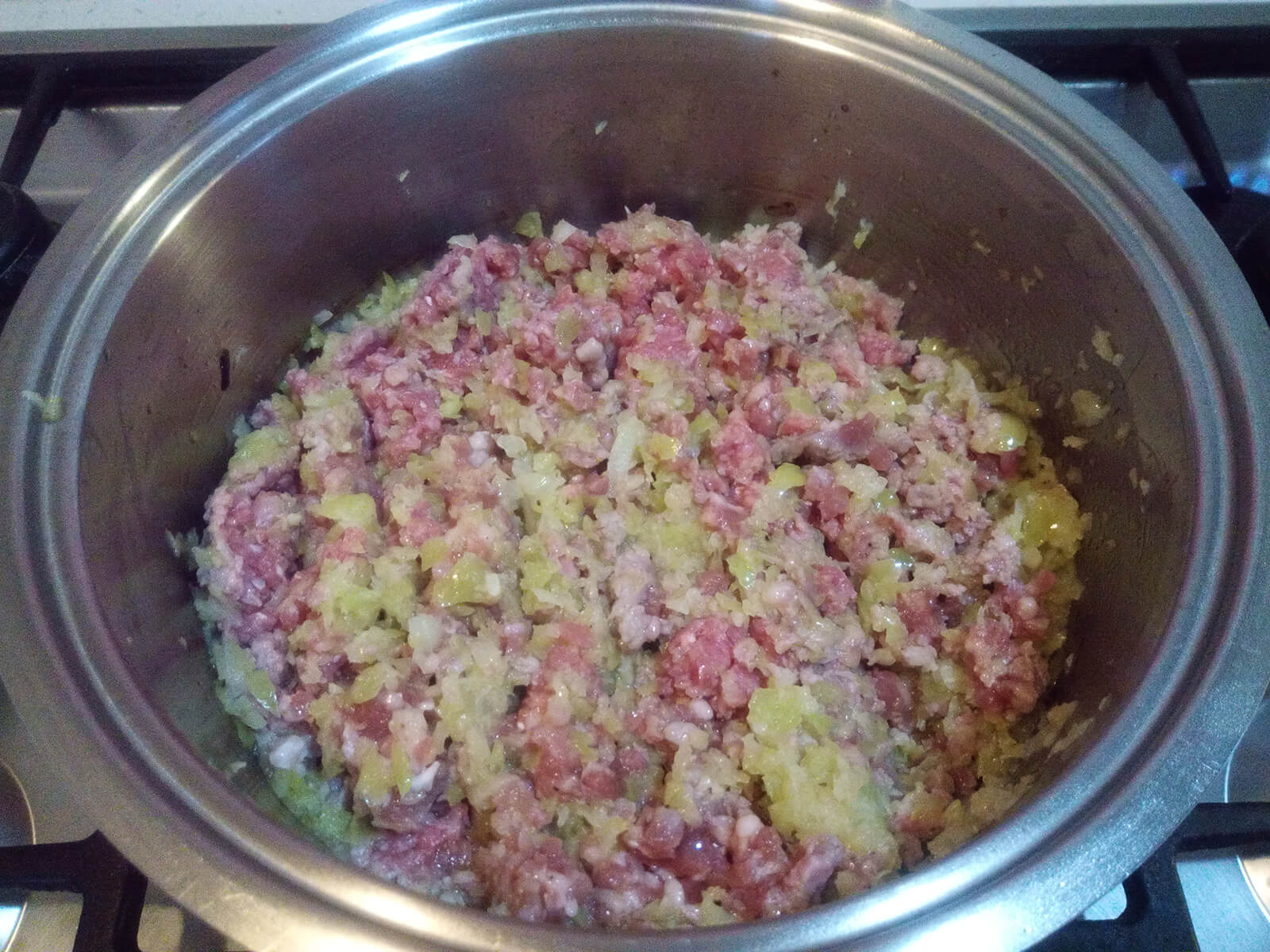 4. Aggiungiamo la carne macinata e cuociamo per 15 minuti.