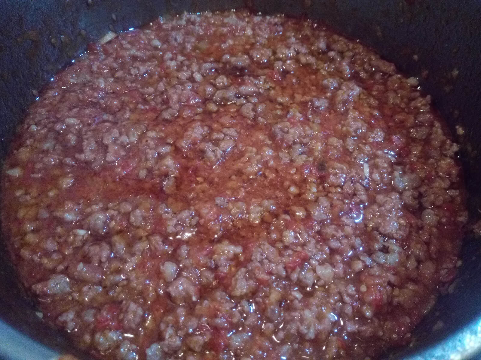 - Aggiungiamo la carne macinata e cuociamo per 15 minuti.