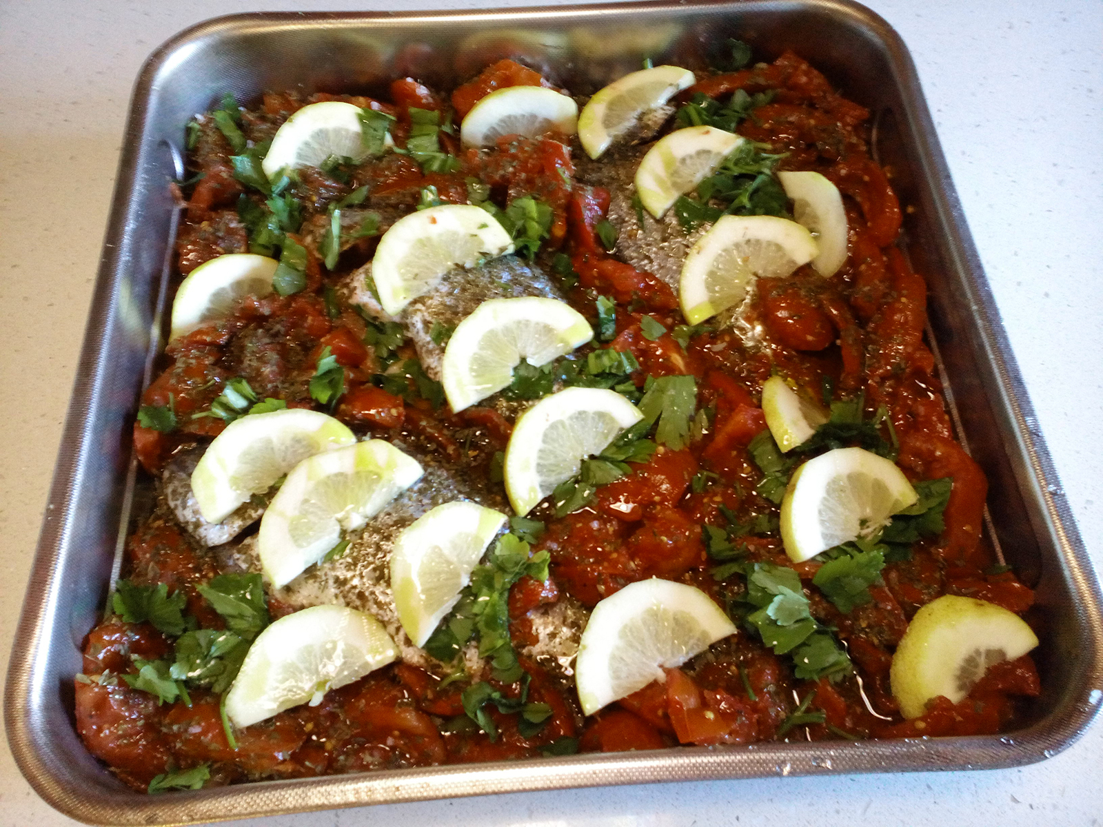 Ricetta dell’orata al forno con pezzi di pomodoro