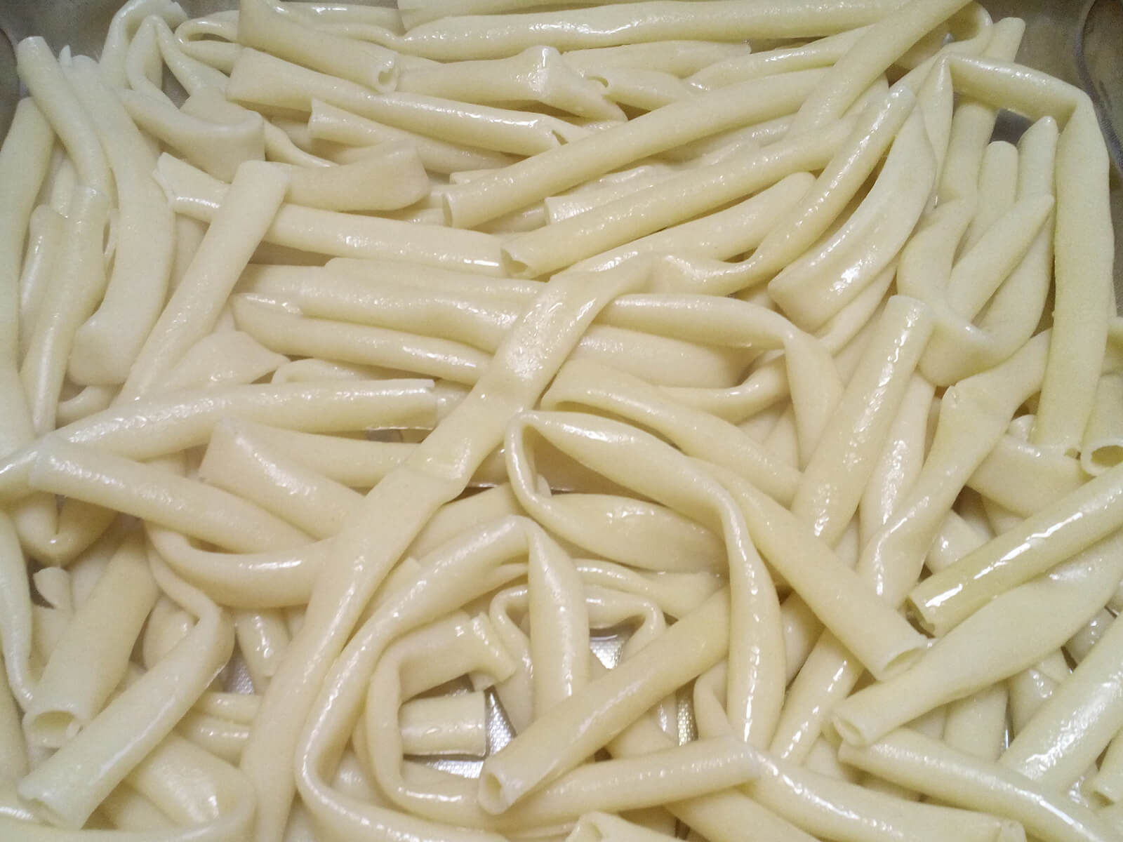 - Amalgamiamo il sugo restante con la besciamella e versiamo sulla pasta creando uno strato liscio.