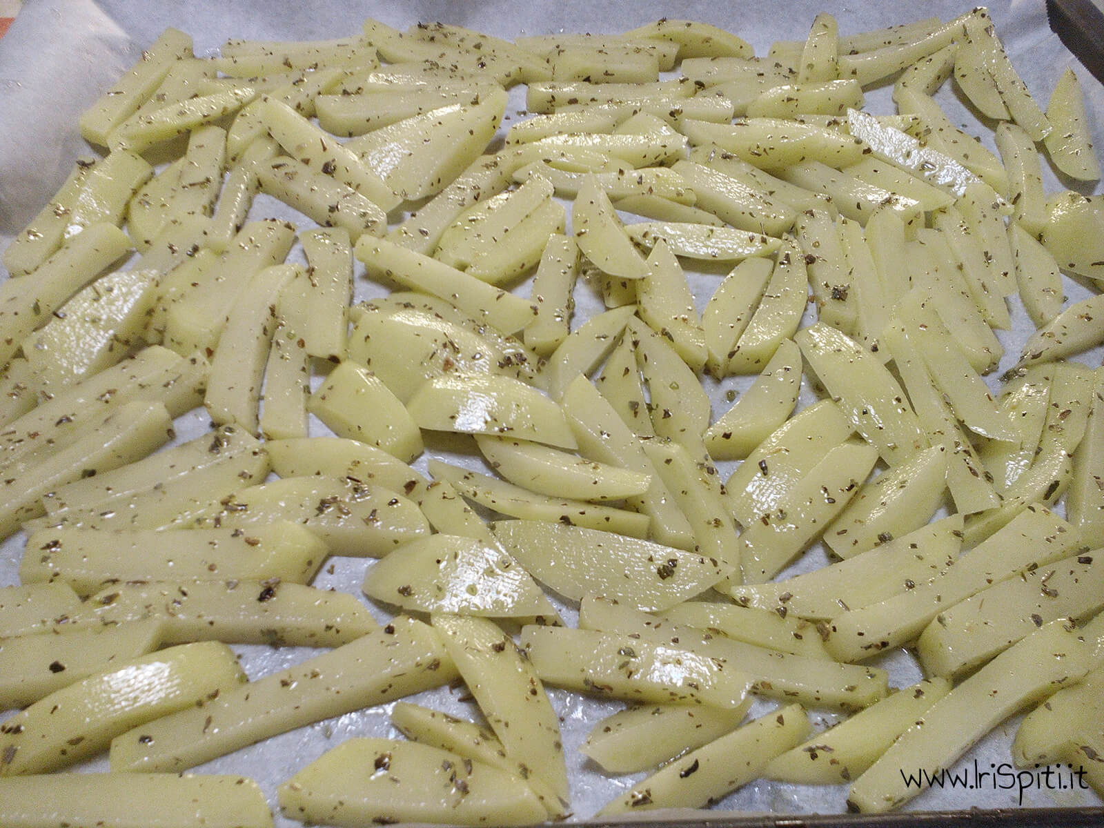 - In una teglia ricoperta da carta da forno stendiamo le patate in modo che non siano soprapposte.