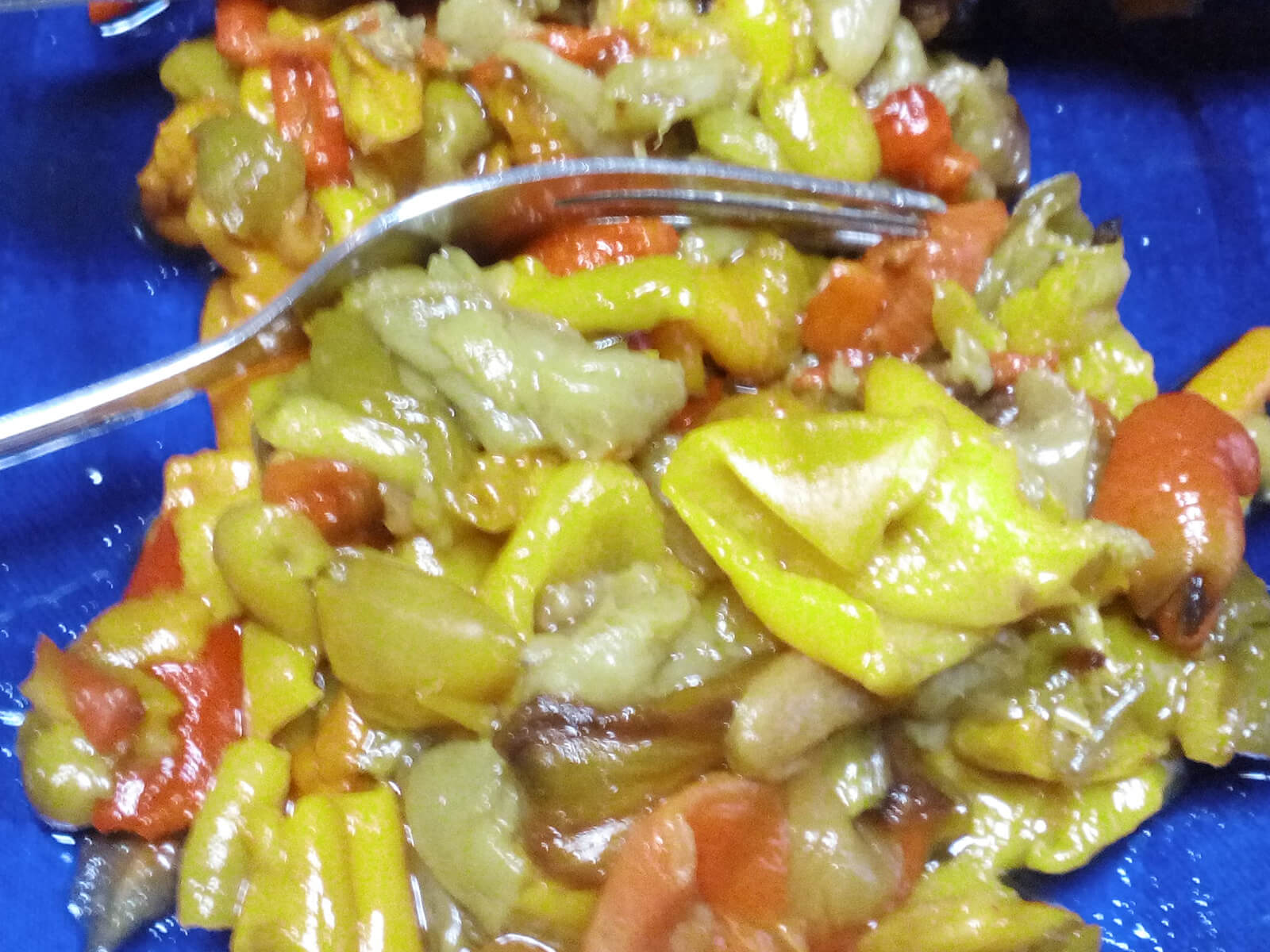 - Una volta spellati i peperoni, li poniamo in un piatto e tagliamo a pezzetti senza sminuzzarli completamente. Aggiungiamo tutti gli ingredienti assieme alla polpa di pomodoro precedentemente cotta, mescolando. Assaggiamo per regolare il sale e l’aceto e mettiamo la nostra salsa di peperoni grigliati in una terrina.