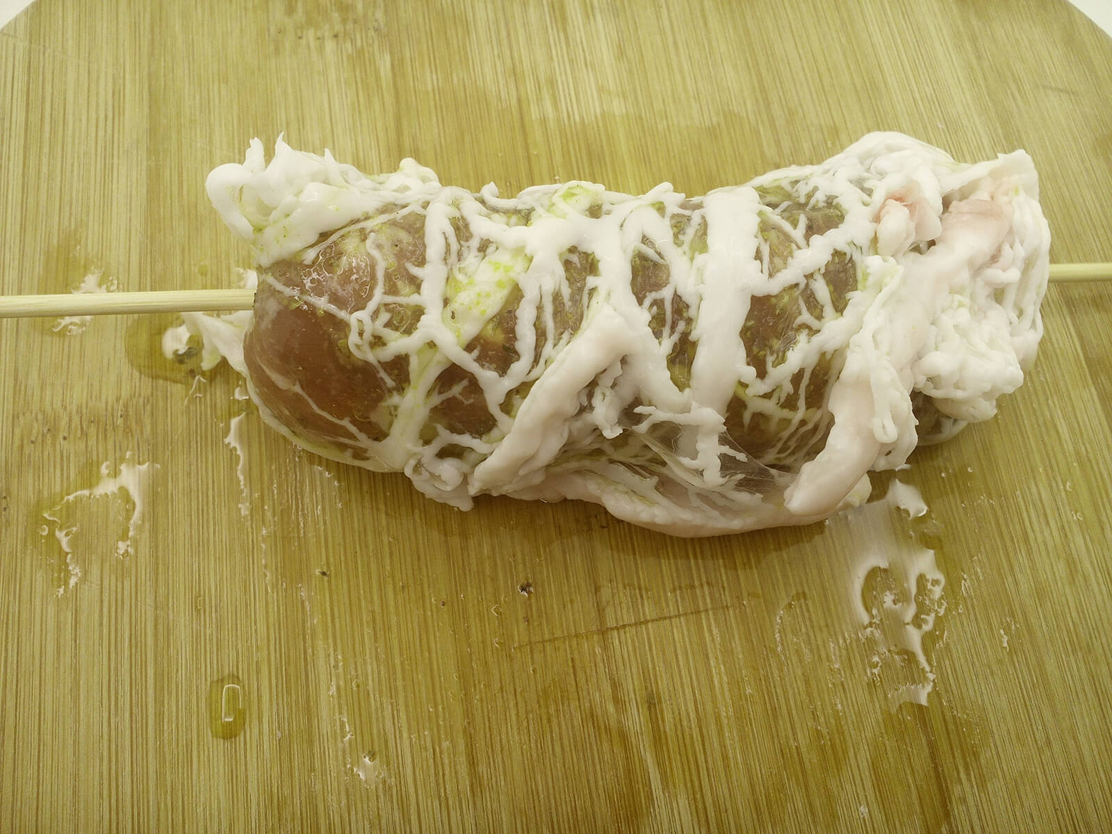 - Chiudiamo l’involtino il meglio possibile e lo fermiamo con lo spiedo.
