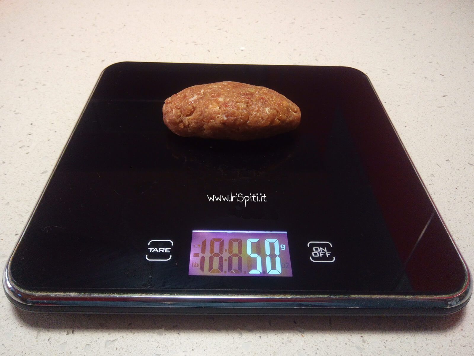 - Con l’aiuto di una bilancia formiamo delle polpette ovali di 50 gr ognuna e le mettiamo direttamente nella nostra casseruola preferibilmente larga e bassa.