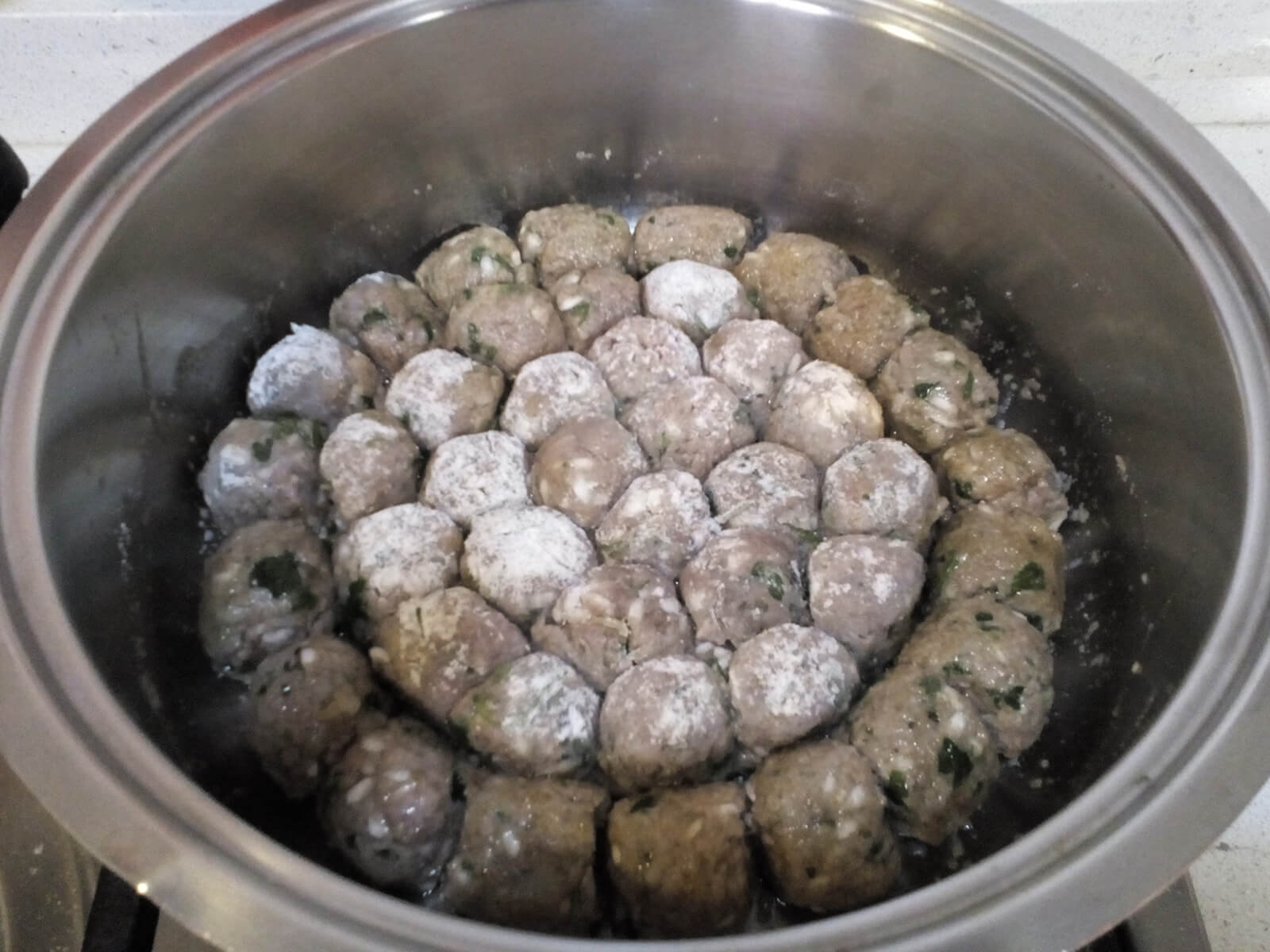 - Bolliamo per circa mezz’ora a fuoco basso, controllando che le polpettine non si attacchino al fondo della pentola e muovendo delicatamente senza distruggerle.