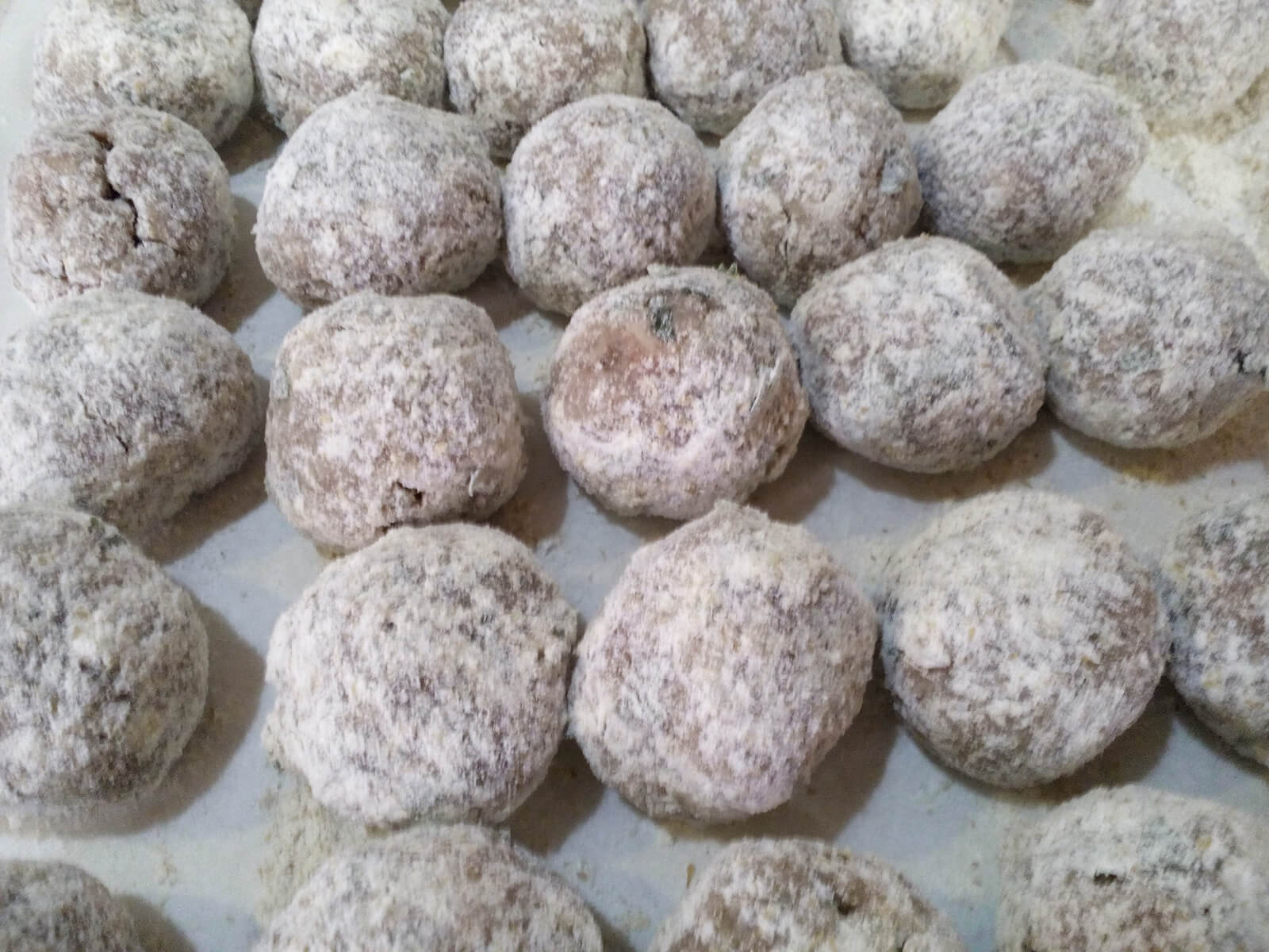 - Infariniamo molto bene i youvarlakia appoggiandosi per comodità su un foglio di carta da forno.