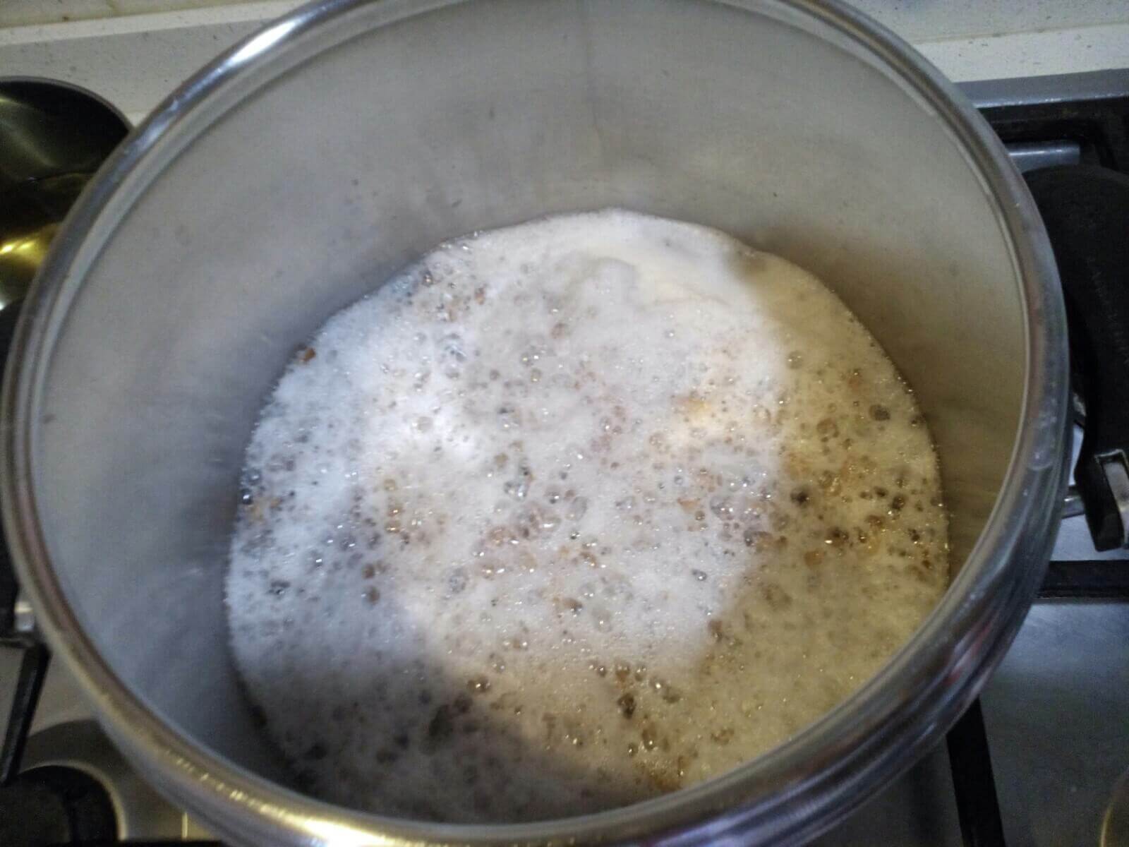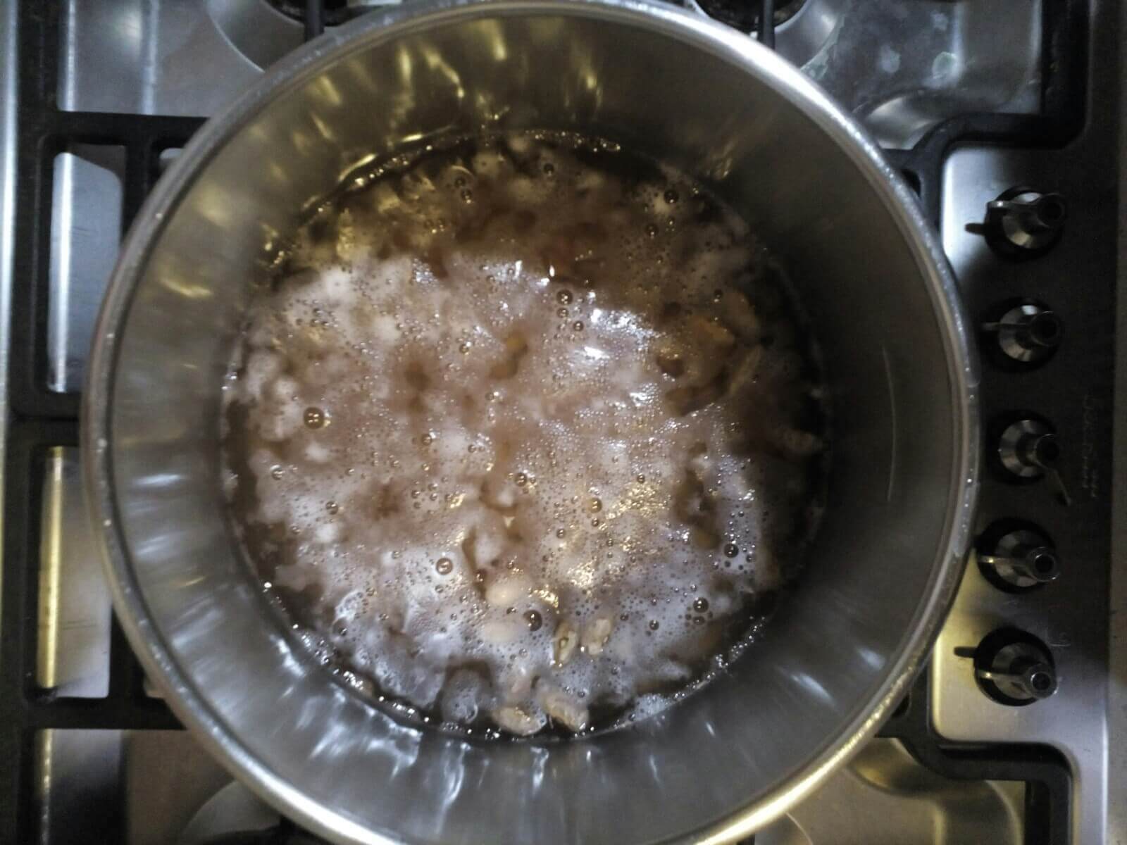 - Il giorno successivo mettiamo i nostri fagioli a bollire, coprendoli completamente con acqua pulita. Durante la bollitura vedremo che si crea della schiuma che dobbiamo assolutamente togliere con il passino. Tolta la schiuma, lasciamo bollire per 10 minuti e dopo scoliamo i nostri fagioli, senza risciacquare.