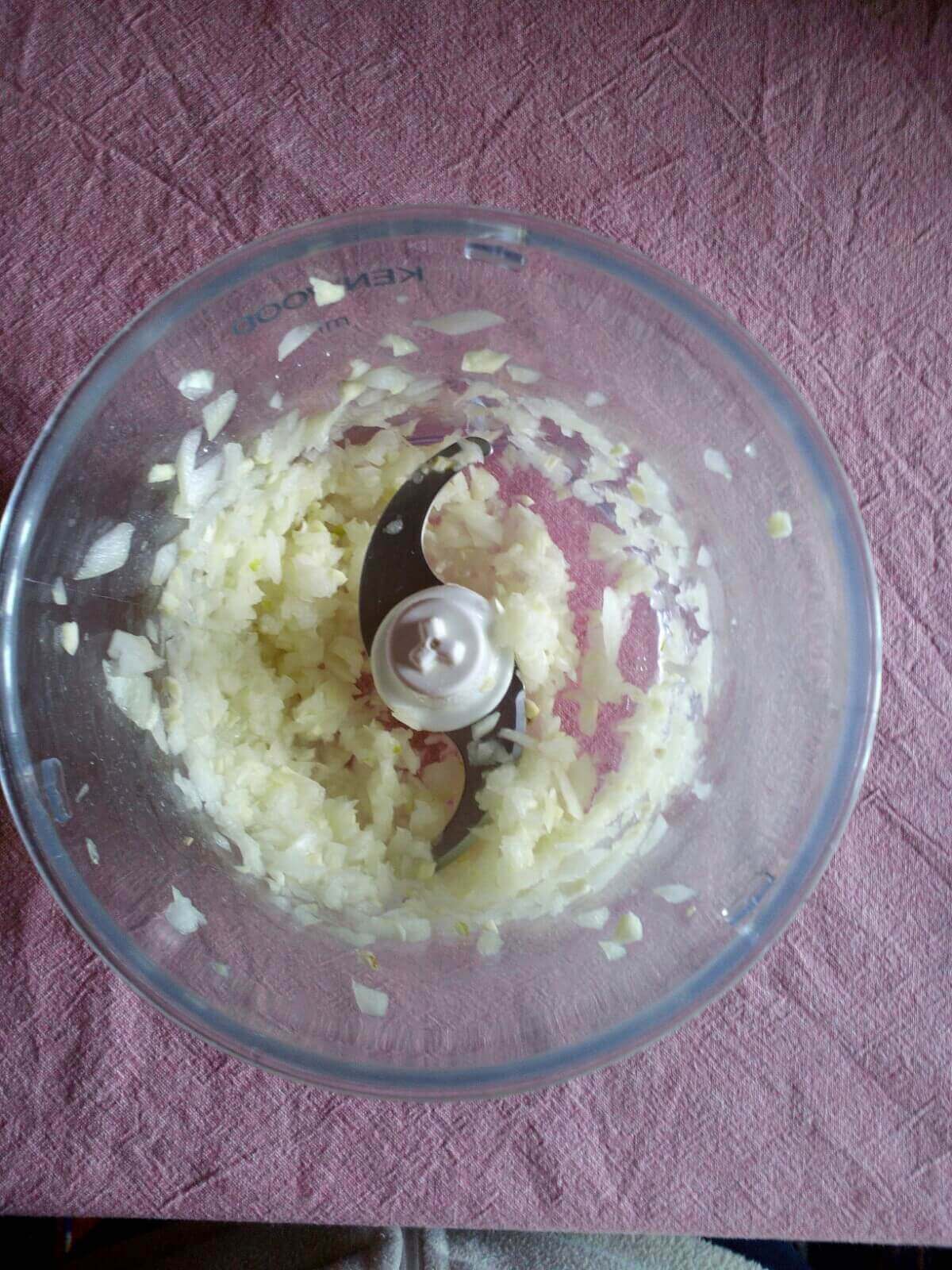 - Nel frattempo tritiamo la cipolla con l’aglio e aggiungiamo il tutto alle lenticchie con l’olio, la passata di pomodoro e le foglie di alloro.